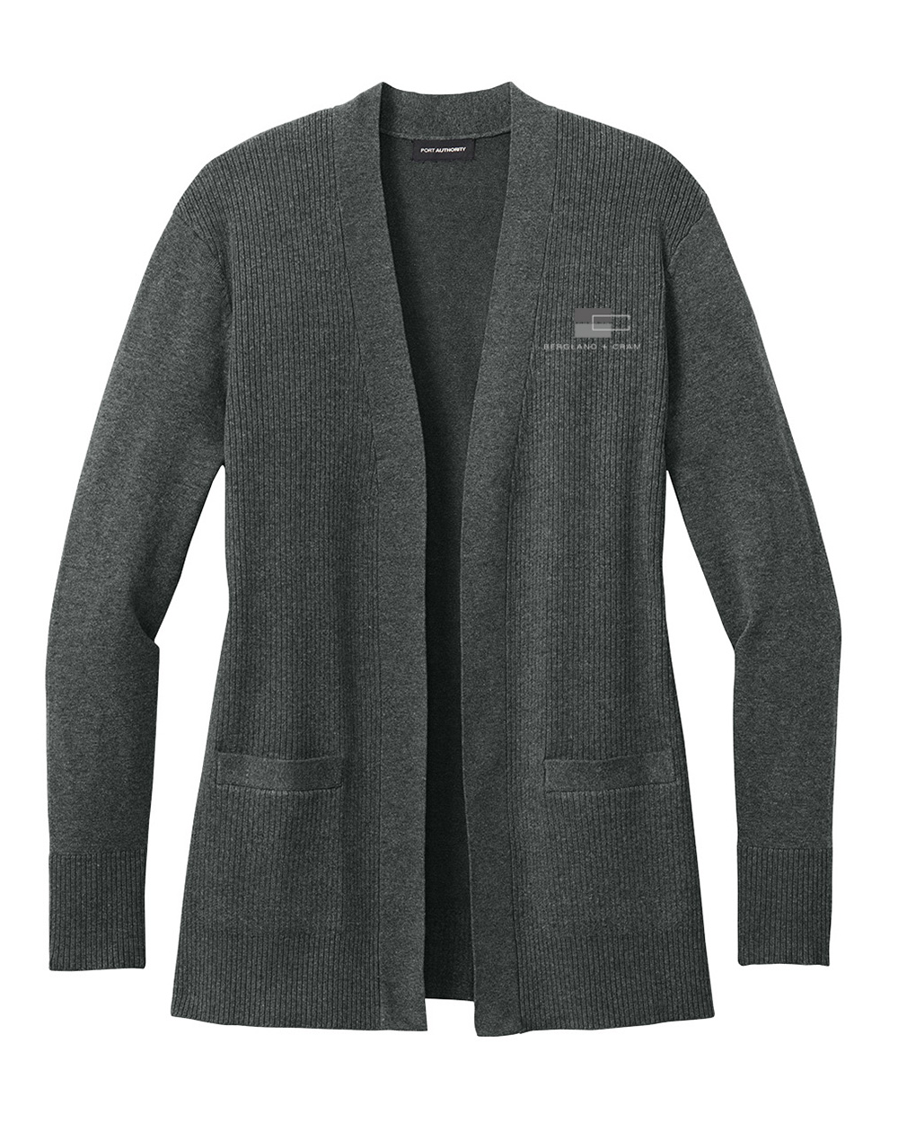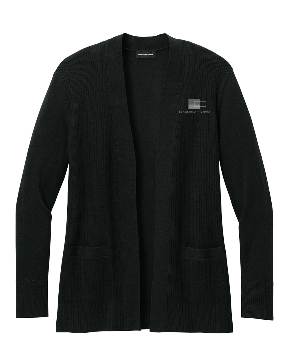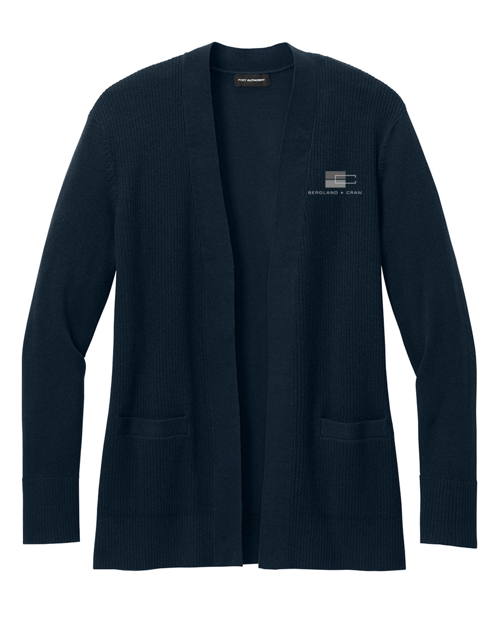 Port Authority women's easy care open-front cardigan sweater embroidered with the B+C logo.