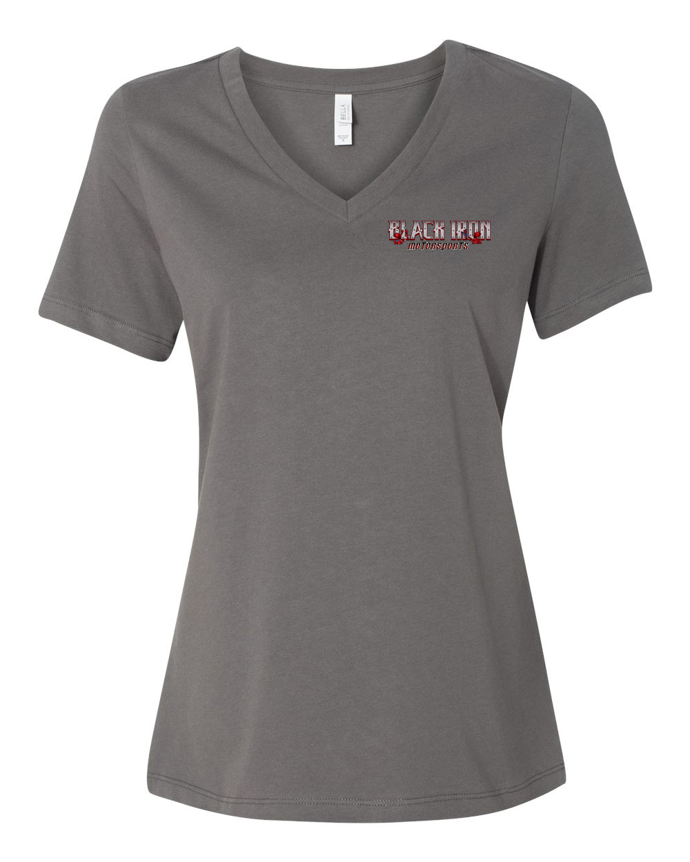 Product Description Bella+Canvas Womens Relaxed V-Neck Tee 4.2 oz./yd² (US) 7 oz./L yd (CA), 100% Airlume combed and ring-spun cotton, 32 singles Pre-shrunk Relaxed fit Side seams Tear away label