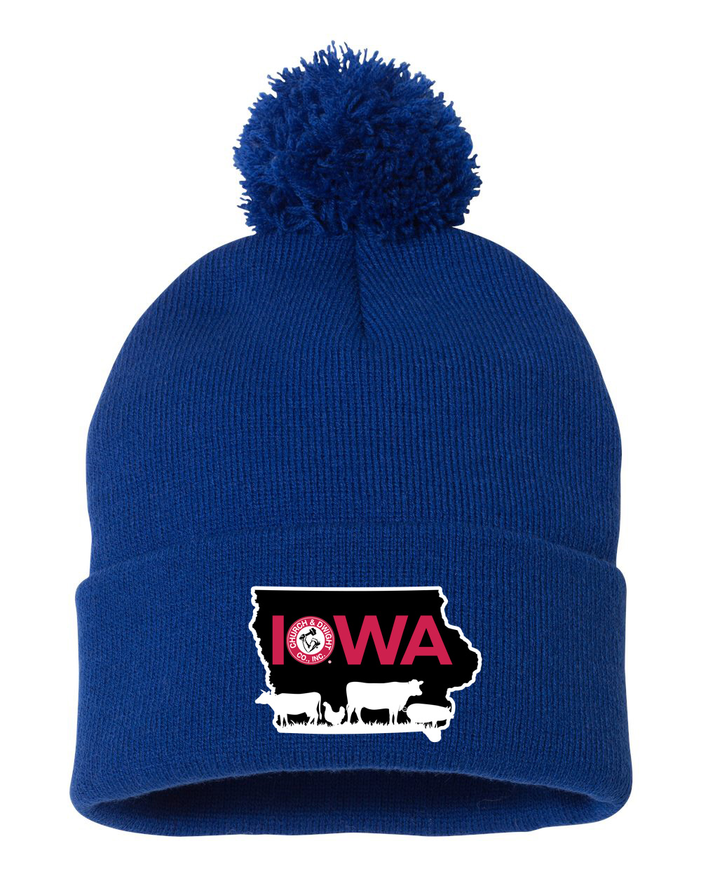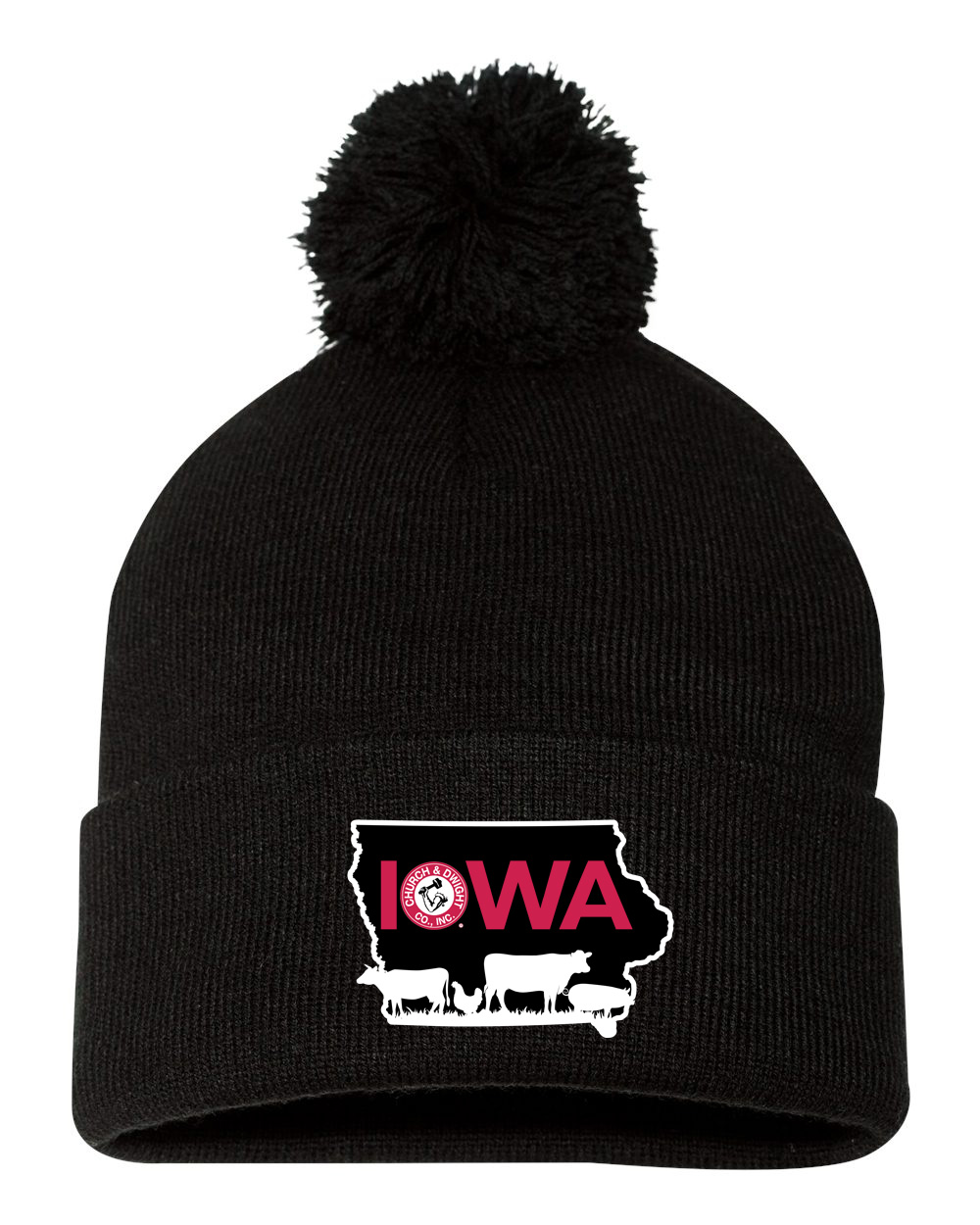 Product Description Sportsman 12" Knit Pom-Pom Beanie with an embroidered Church & Dwight logo. 100% acrylic 12" in length 3'' in cuff Pom-pom on top