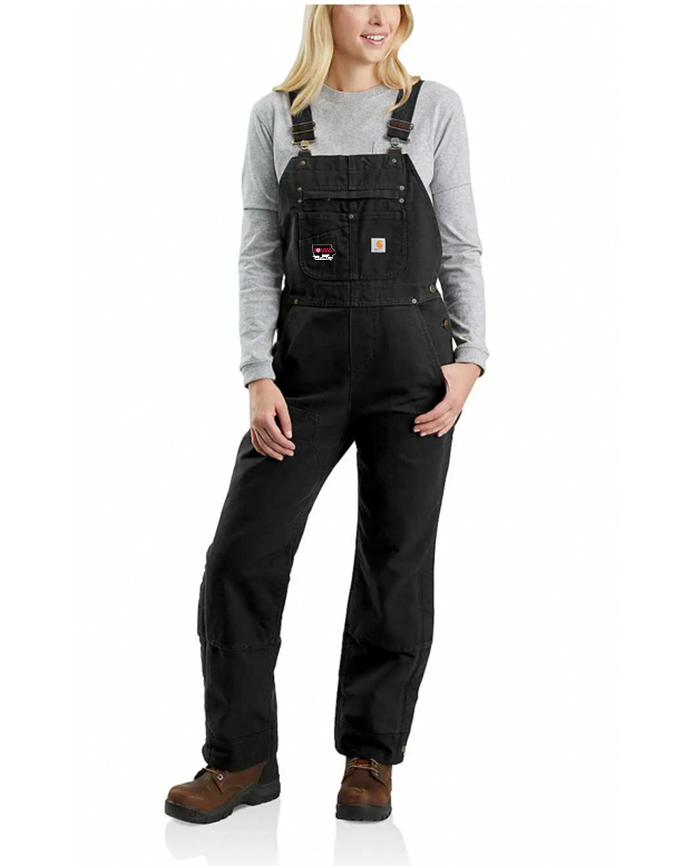Carhartt relaxed fit washed duck insulated bib overall printed with the Church & Dwight logo.