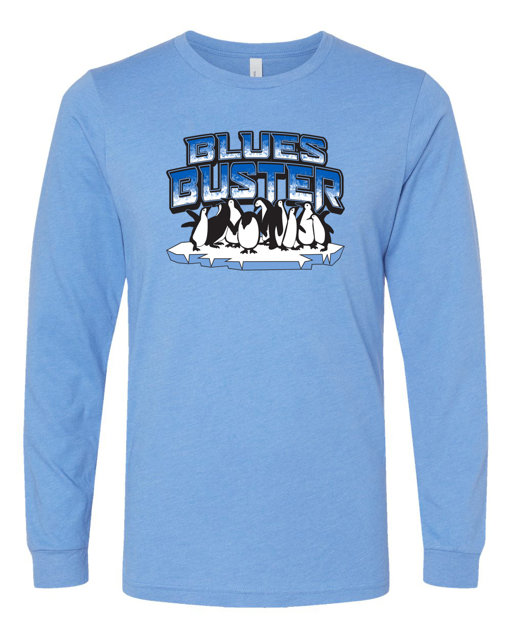 Bella+Canvas CVC long sleeve tee screen printed with the Blues Buster logo on the front, and athlete roster on the back. Available in unisex adult sizes.
