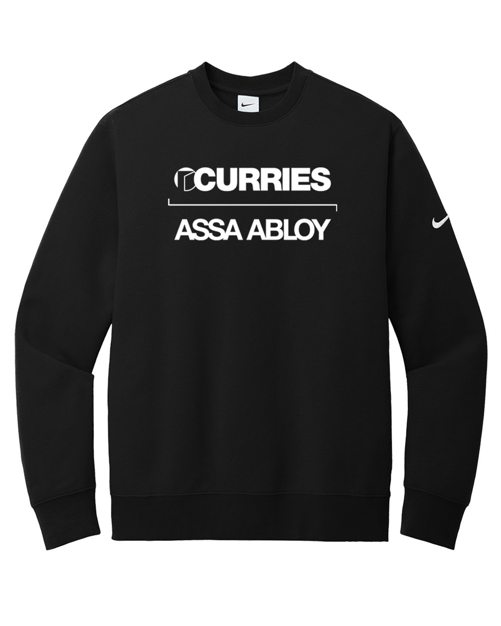 Nike club fleece sleeve Swoosh crew screen printed with the Curries logo. Available in unisex adult sizes.
