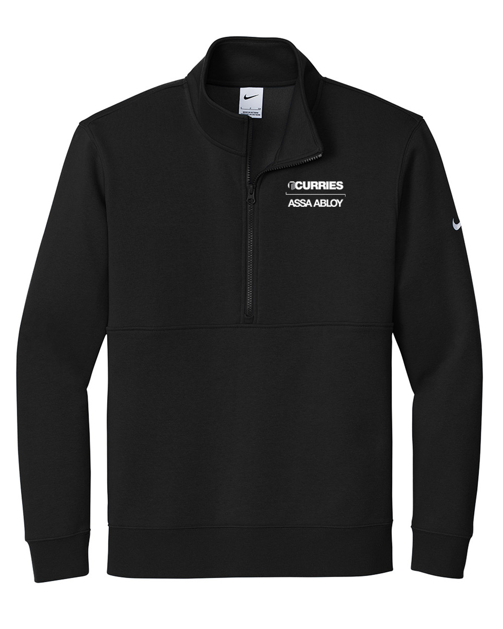 Nike club fleece sleeve Swoosh 1/2-zip embroidered with the curries logo. Available in unisex adult sizes.