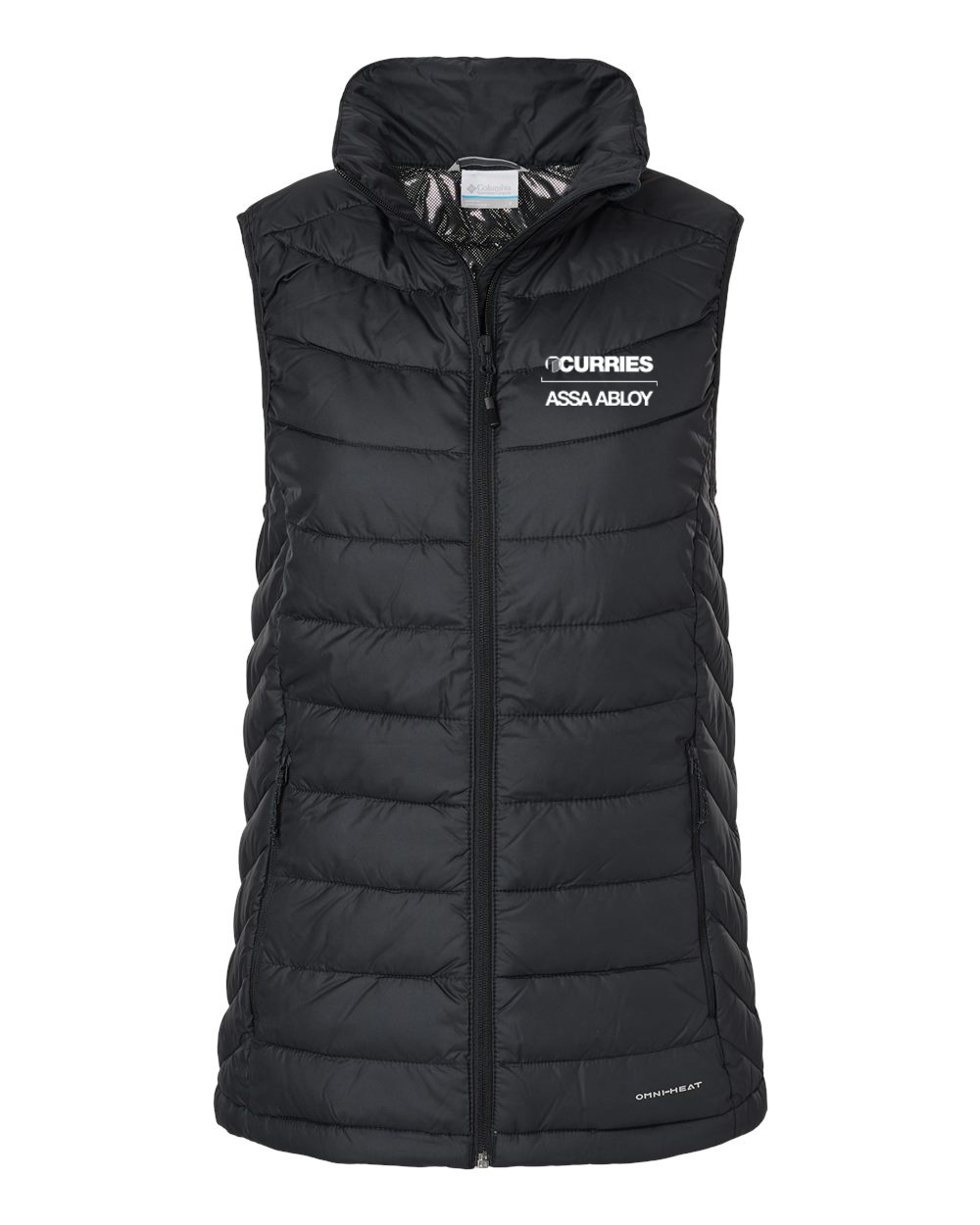 Columbia women's Powder Lite vest embroidered with the Curries logo. Available in adult women's sizes.