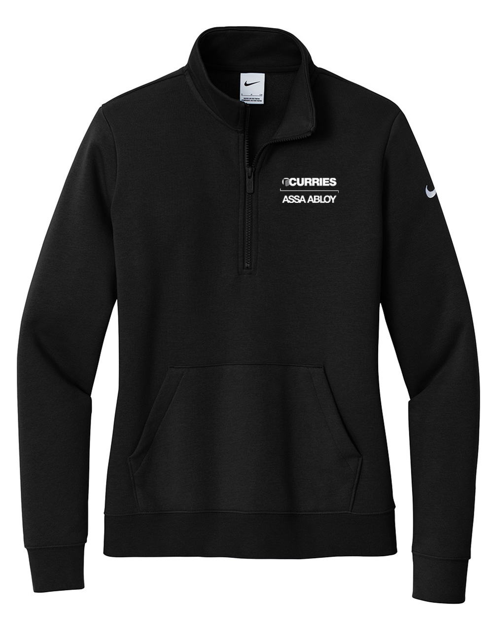 Nike women's club fleece sleeve Swoosh 1/2-zip embroidered with the curries logo. Available in adult women's sizes.