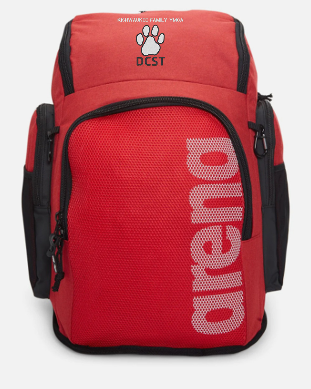 Arena Backpack embroidered with the PSC logo and your swimmers name. Available in black and red.