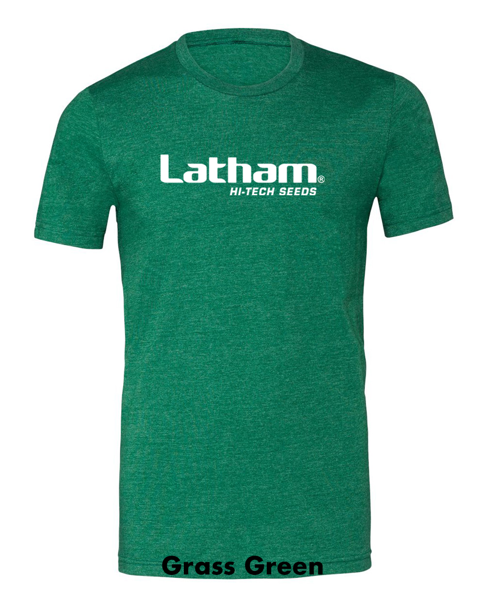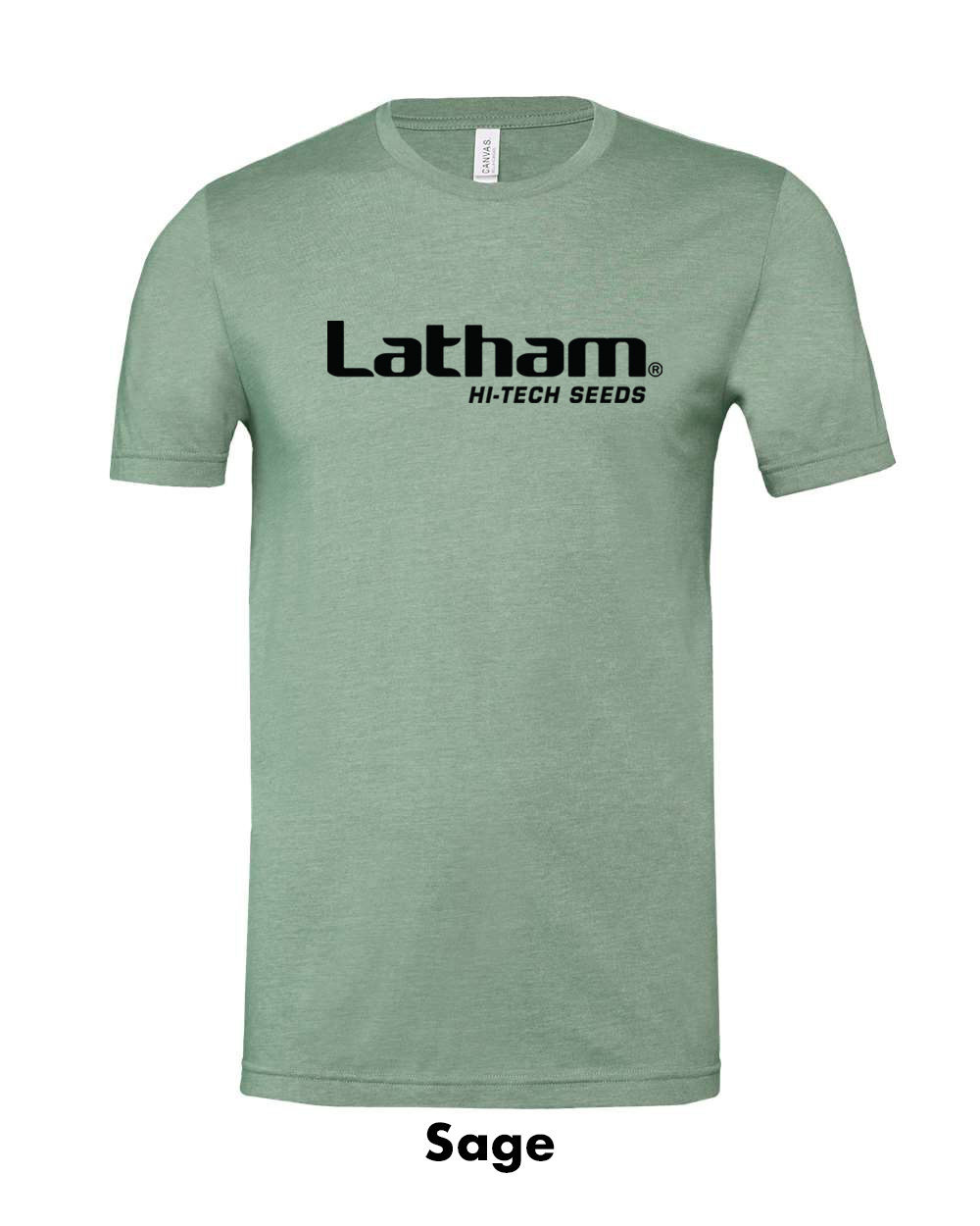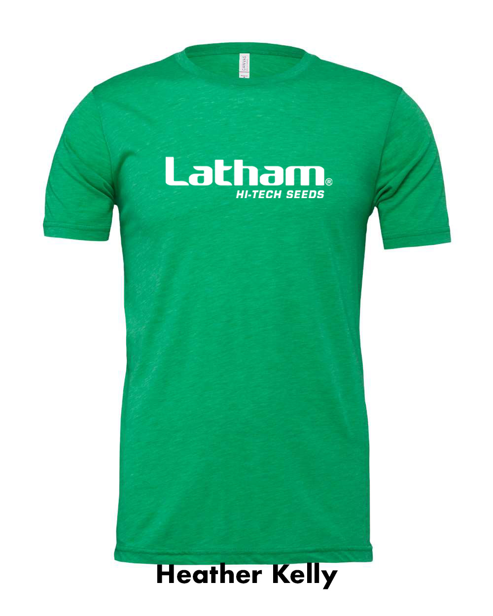 Bella+Canvas CVC Tee printed with the Latham Seeds logo. Available in unisex adult sizes.