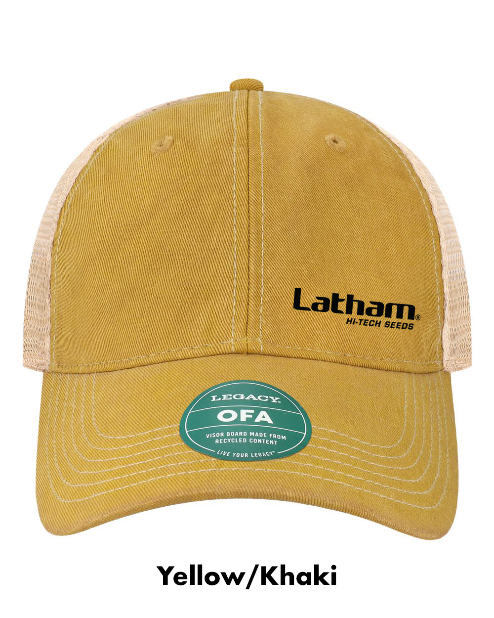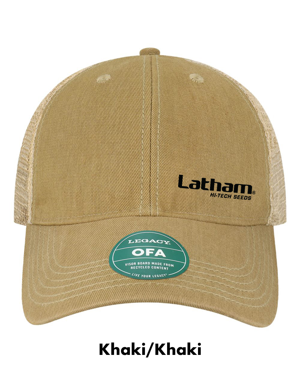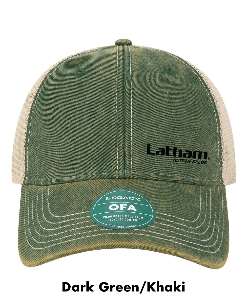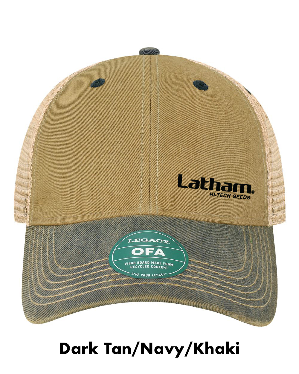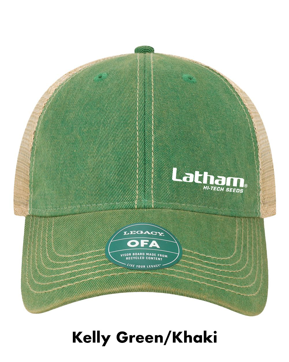 Legacy Old Favorite Trucker Cap embroidered with the Latham Seeds Logo.
