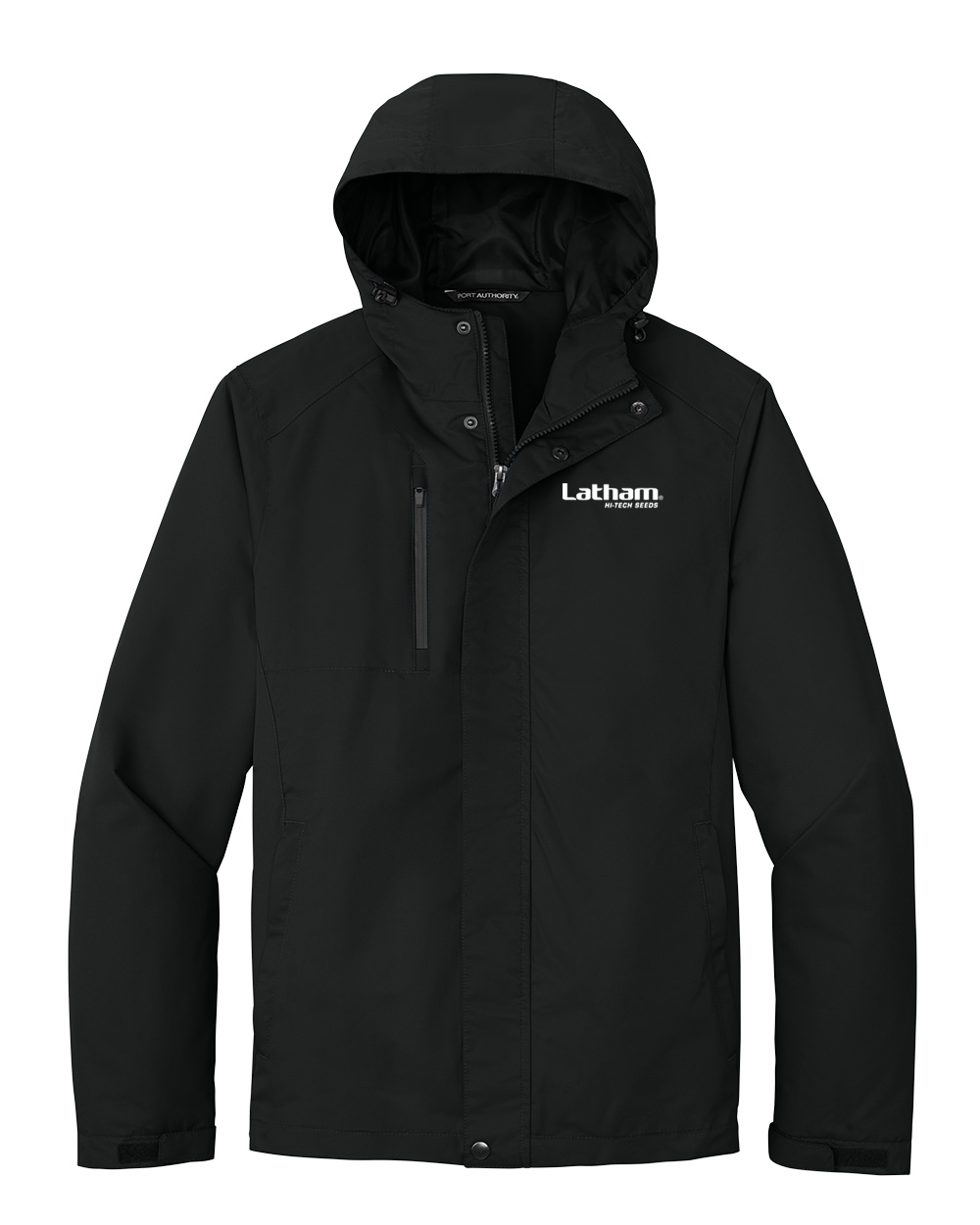 Port Authority All-Conditions jacket embroidered with the Latham Seeds logo. Available in unisex adult sizes.