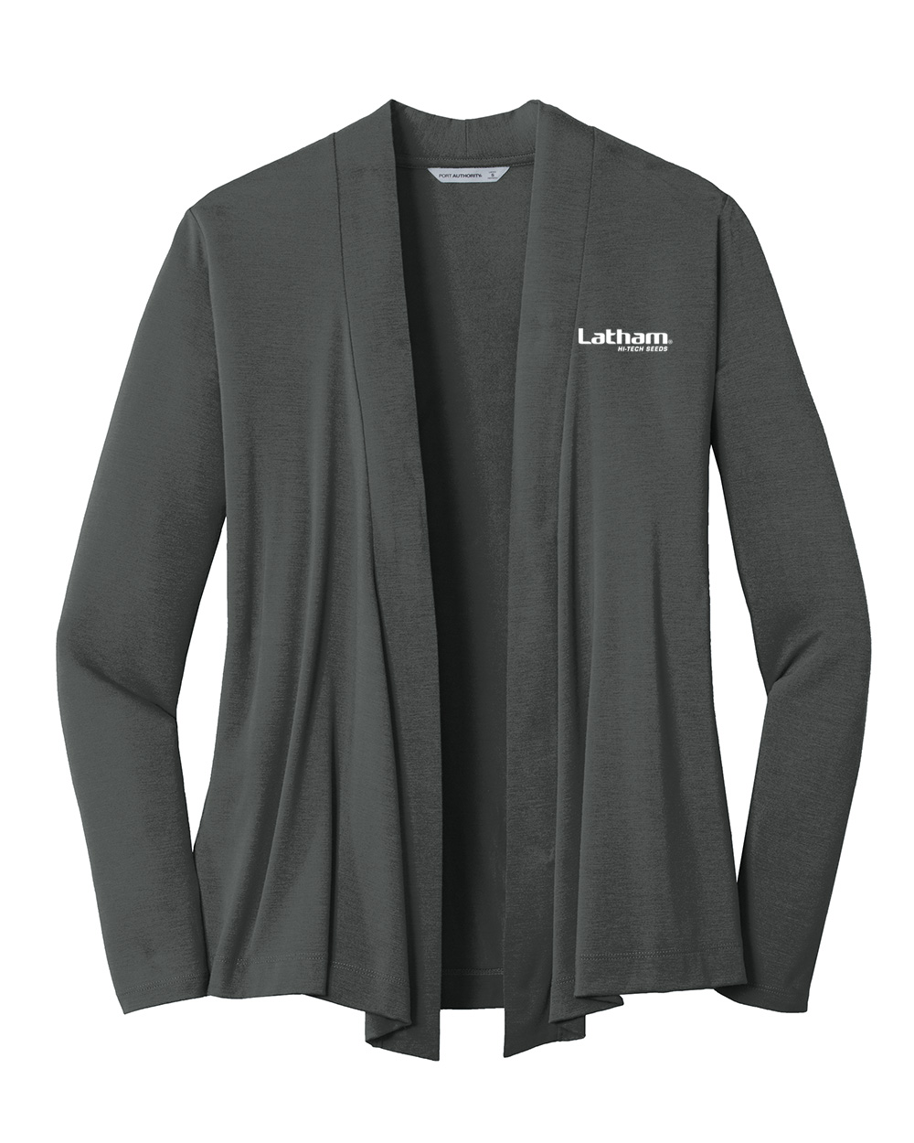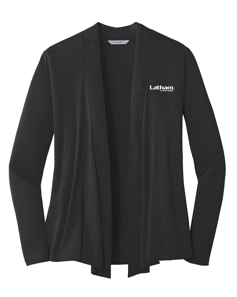 Port Authority ladies Concept open cardigan embroidered with the Latham Seeds logo. Available in women's adult sizes.