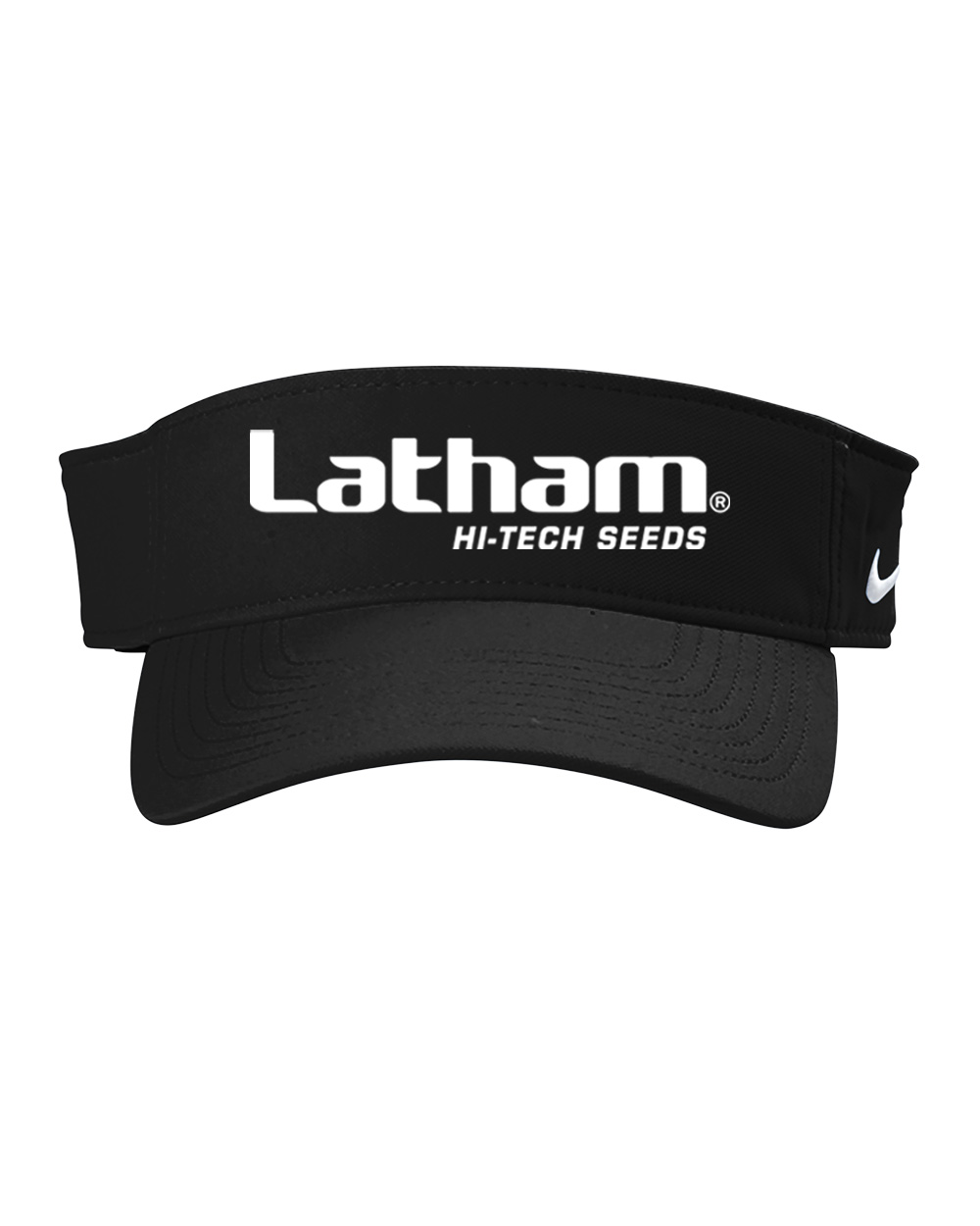 Nike Dri-Fit team performance visor printed with the Latham Seeds logo. One size fits most.