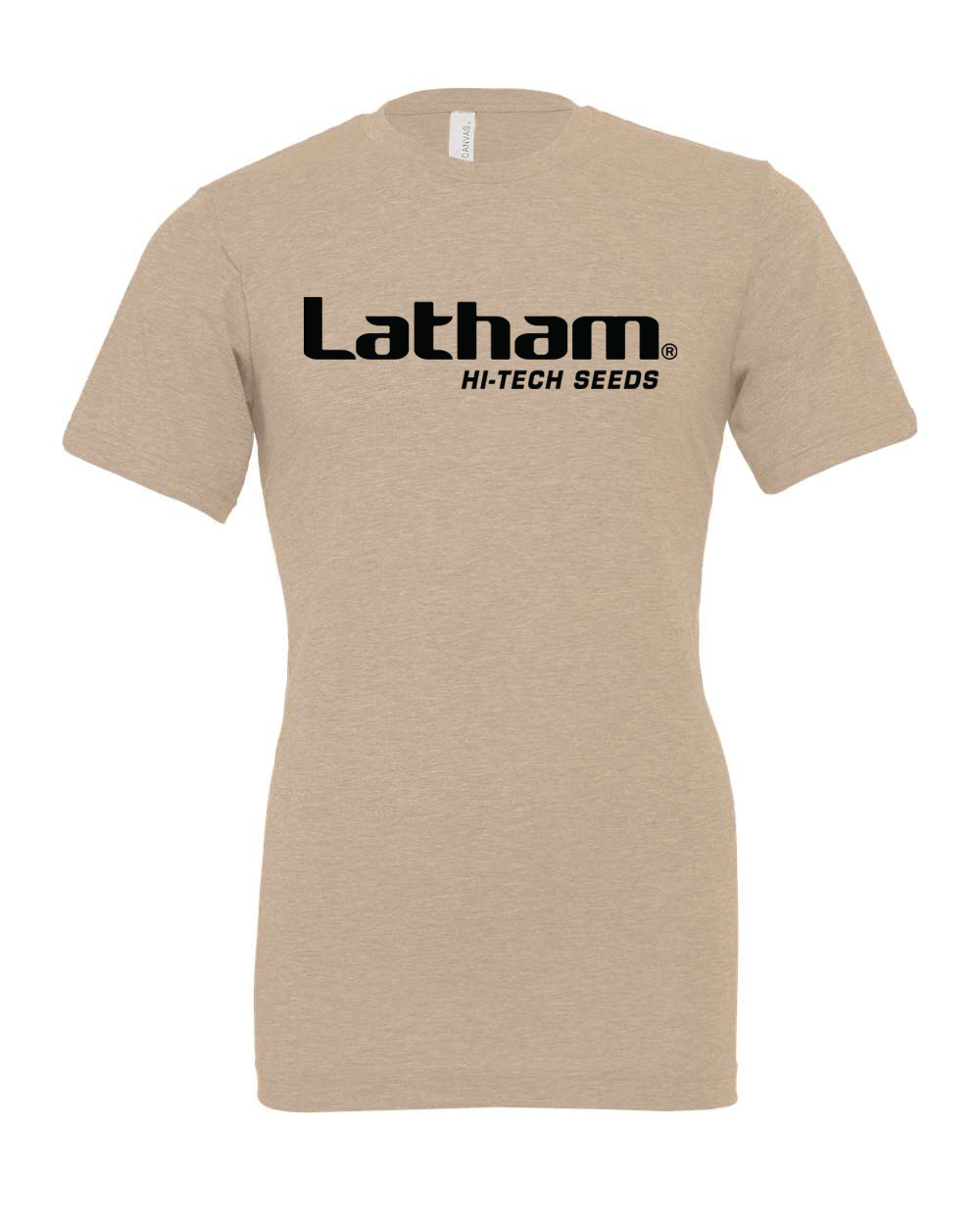 Bella+Canvas CVC Tee printed with the Latham Seeds logo. Available in unisex adult sizes.