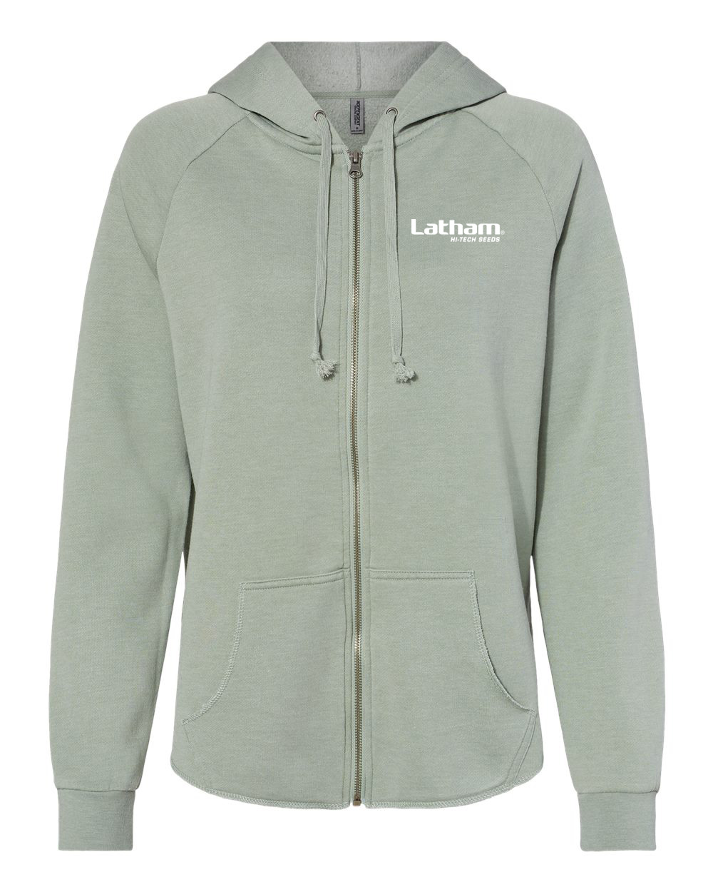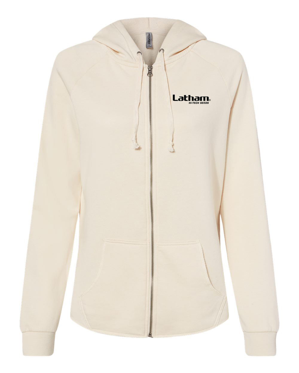 Independent Trading Co. women's California wave wash full-zip hooded sweatshirt embroidered with the Latham Seeds logo. Available in women's adult sizes.
