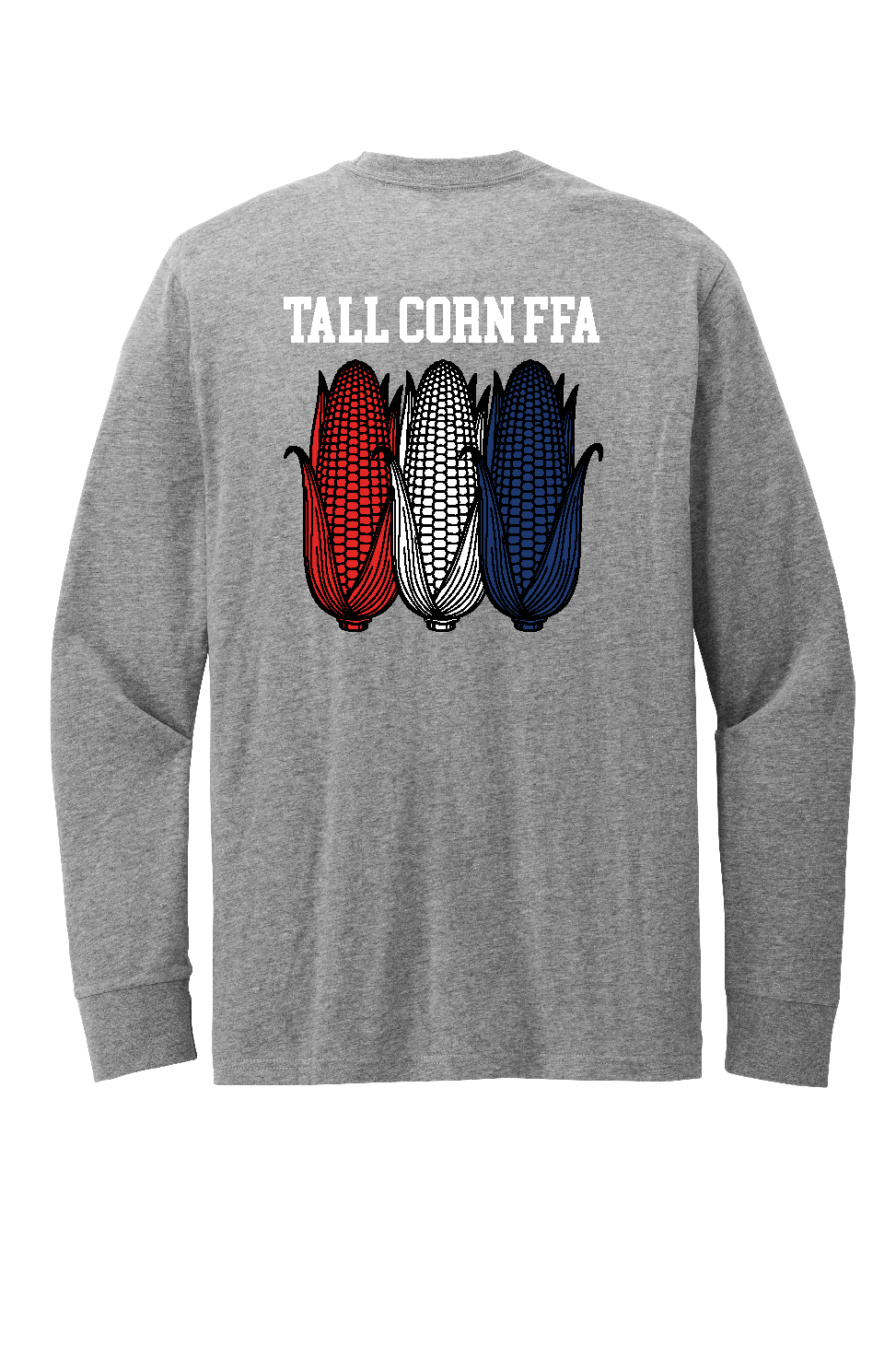 District Perfect Blend cvc long sleeve tee printed with the Tall Corn chapter logo on the front and back. Available in unisex adult and youth sizes