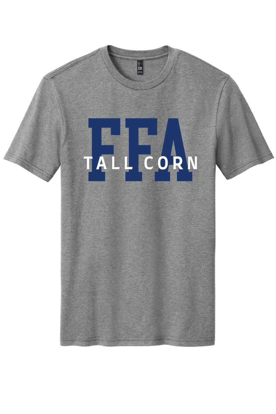 District Perfect Blend cvc short sleeve tee printed with the Tall Corn logo on the front and back. Available in unisex adult and youth sizes.
